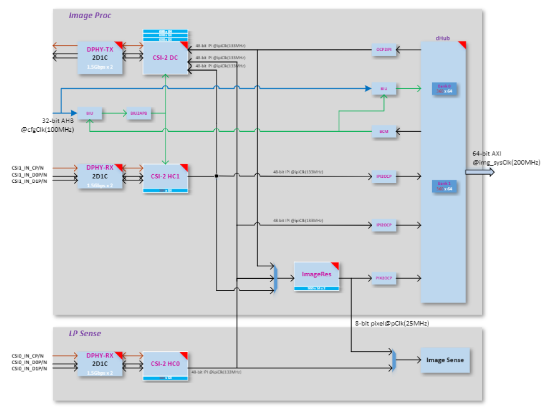 3. Sensor’s pixel rate must be lower than LP Sense clock (25Mhz) when CSI Host controller connected to LP sense path